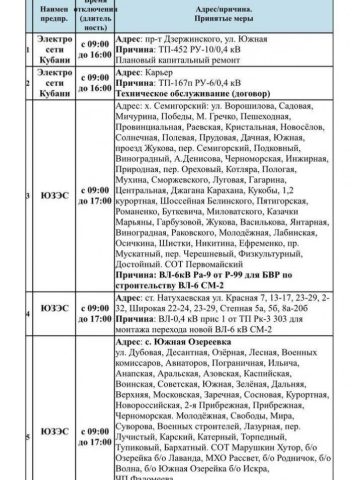 Информация о плановом и срочном отключении электроэнергии и и газоснабжения в Новороссийске 16.10.2025 предоставлена МБУ «Безопасный город».