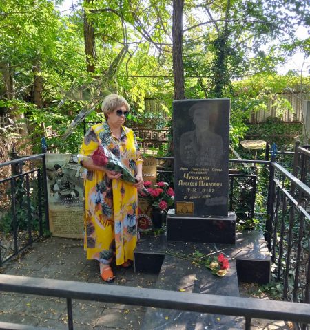 Татьяна Николаевна Елисеева, директор школы, приехала отдыхать на море и сочла своим долгом побывать на могиле героя Советского Союза Алексея Павловича Чурилина, который похоронен в Новороссийске.