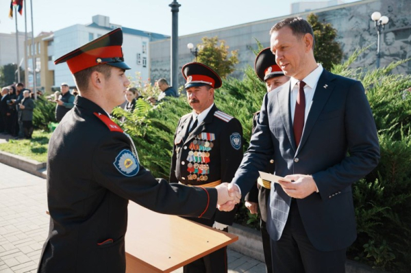 Глава Новороссийска Андрей Кравченко совместно с депутатом Государственной Думы Российской Федерации Сергеем Алтуховым,депутатом Законодательного собрания края, Героем труда Кубани, войсковым старшиной Николаем Филипповичем Чалым, начальником отдела координации деятельности казачьих кадетских корпусов департамента по делам казачества, военным вопросами работе с допризывной молодежью Краснодарского края Анной Викторовной Дорофеевой, епископом Новороссийским и Геленджикским Сергием, почетными гостями, казачатами и казаками Черноморского казачьего округа приняли участие в торжественной церемонии посвящения. Новороссийский казачий кадетский корпус пять раз был признан лучшим в России. На сегодняшний день корпус является центром казачьего образования Кубани и России, а его воспитанники регулярно становятся победителями конкурсов различных уровней. Каждое достижение — доказательство высокого уровня образования и казачьего воспитания, которые здесь получают юные воспитанники. Многие из выпускников корпуса связали свою жизнь с военной службой и продолжают славные традиции кубанского казачества.Педагогам и казакам-наставникам вручили благодарственные письма, почетные грамоты и наградной крест «За заслуги перед Кубанским казачеством». Кадеты-воспитанники казачьего корпуса удостоены медалей «За участие в военном параде в День Победы». «Поздравляю казачат со значимым событием! Уверен, что каждый из них будет с гордостью нести звание кадета», – написал в своих социальных сетях глава Новороссийска.