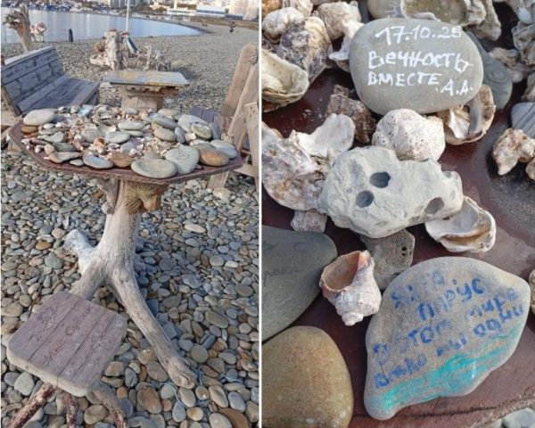 – На Мысе Суджук в локации творчества Валерия Андреева появилась новая традиция у туристов оставлять камни с рисунками и надписями на память краской и даже чернилами.